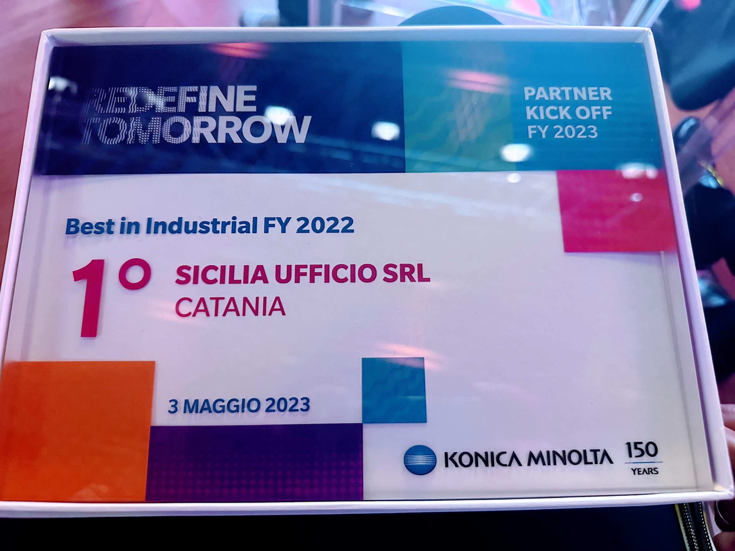 Sicilia Ufficio è stata premiata come miglior dealer Konica Minolta in Italia per i prodotti Industrial Printing di Konica Minolta per il 2022.